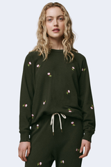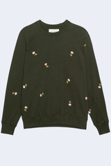 The College Sweatshirt with Embroidered Roses in Woodland Green